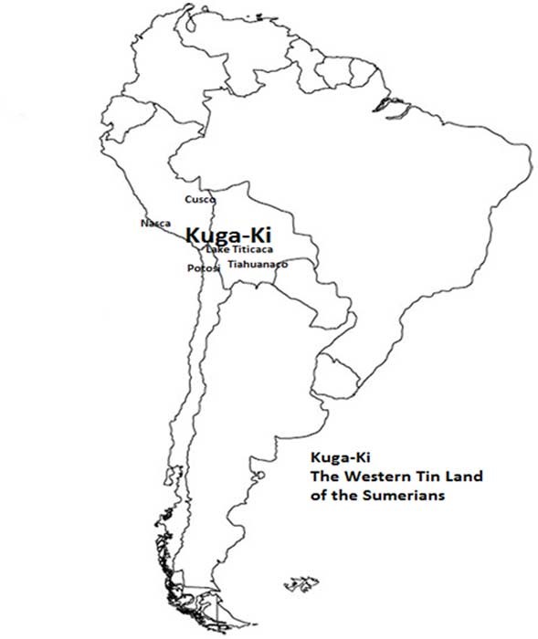 Os sumérios possivelmente descobriram em um princípio o caminho a Kuga-Ki graças nas correntes atlânticas que levam desde África até Brasil. Os primeiros exploradores sumérios provavelmente alcançaram Brasil e remontaram o Amazonas até encontrar grandes depósitos de estanho na Bolívia / peru. O centro principal para a exploração mineral nesta região eram, é e ainda na atualidade Potosí.