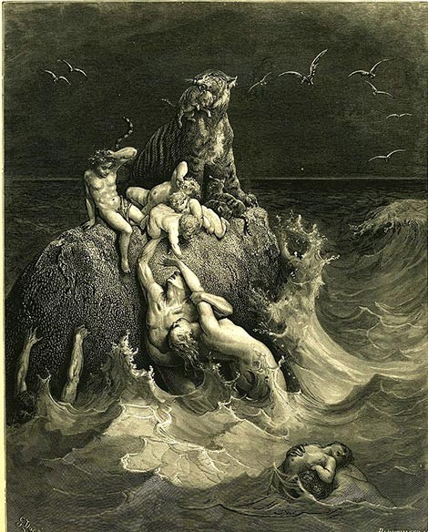 Se possa encontrar mais informação sobre a questão dos gigantes e seu destino final é recorrer ao texto hebreu do Antigo Testamento. No relato da inundação de Yahwist em Genesis 6, o autor assinala repetidamente que devido aos gigantes na terra estava cheia de violência (hebreu: hamas). Como nota-se no dicionário hebreu de Strong, o termo hamas se usa muitas fezes na violência autodestrutiva, que significa atos de violência física dirigido não somente aos demais, sendo em última instancia fazia o mesmo e os tratos com membros de sua própria comunidade.