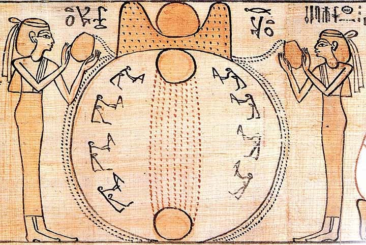Rá então envia um de seus olhos a vigiar o Céu e a Terra. A humanidade chegou a surgir das lágrimas desse olho de Rá. Então o Deus egípcio do Sol, cria as demais divindades e toma forma humana para se converter no primeiro faraó do Antigo Egito.