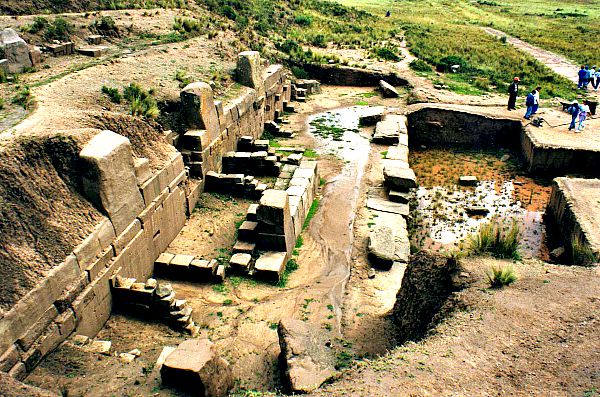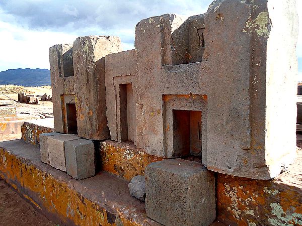 Afastar-nos do centro da cidade, a uns 500 metros, se encontram as ruinas do complexo Puma Punku ou Porta do Puma. Uma estrutura formada por três grandes plataformas sobrepostas na forma de pirâmide escalonada e onde se levantam colossais blocos de andesito mostrando perfeitos ângulos retos e precisos orifícios circulares. Entre tais blocos destacam os denominados “blocos H”, porque, precisamente tem forma de “H” e que pareciam as peças de jogo de crianças gigantes, todas iguais, esperando ser colocadas.