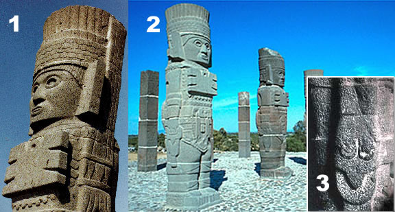 Na cidade tolteca de Tula, localizado no estado de Hidalgo, no México, existem esculturas de enigmáticos gigantes de 4 metros de altura e que ainda possuem curiosos detalhes, estimados por alguns ufólogos como fora do tempo. Para esses pesquisadores, essas esculturas representariam a visitantes do espaço, possuidores de uma série de instrumentos que fazendo pensar em tecnologia muito avançada.