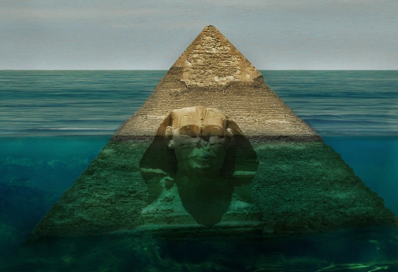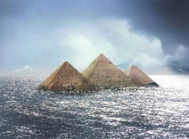 Segundo uma interpretação, as pirâmides e a esfinge são artefatos megalíticos que sobreviveram ao Grande Dilúvio.