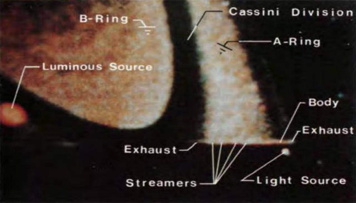 Segundo Bergrun, quando se analisam as imagens obtidas durante os sobrevoos das sondas Voyager durante anos, revela estranhos objetos próximos dos anéis.