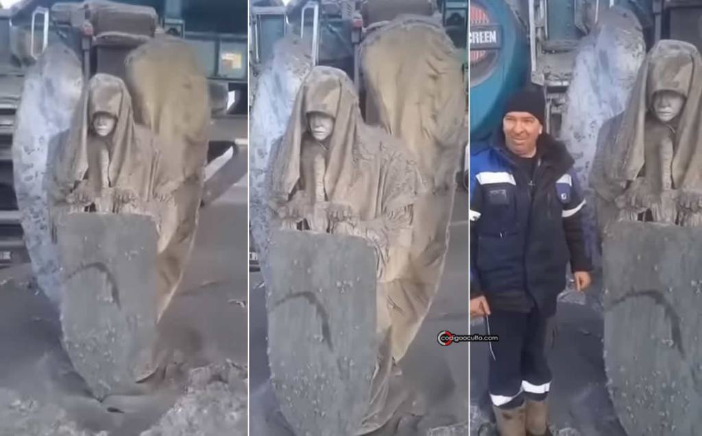 Mineiros do campo de carvão de Elga (Yakutsk), na Sibéria, desenterraram uma estranha estátua sob a forma de uma mulher com espada e escudo, e atrás dela parece ter asas, como um anjo caído. A estátua foi desenterrada por um escavadora.