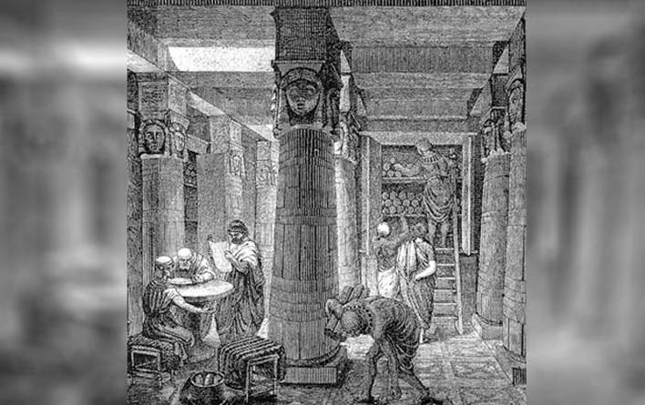 Considerada uma verdadeira “Biblioteca universal” do mundo antigo, chegou a abrigar mais de 900.000 manuscritos que foram destruídos por uma série de desastres e guerras. Acredita-se que todo o conhecimento científico dos gregos tenha sido perdido. Alguns pesquisadores afirmam que sua destruição foi proposital.