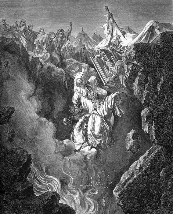 O Antigo Testamento relata, por exemplo, que quando Corá se rebelou contra Moisés, Moisés ordenou que ele comparecesse com 250 de seus homens carregando incensários diante de Yahweh na porta da Tenda da Reunião. E quando eles chegaram, juntamente com o restante da comunidade, Moisés disse: “Com isso, vocês saberão que Yahweh me enviou para fazer todas essas obras, e que não é obra minha: se esses homens morrerem como qualquer mortal morre sob a sentença comum a todos os homens, é porque Yahweh não me enviou. Mas se Yahweh fizer algo poderoso, se a terra abrir a boca e os engolir com tudo o que lhes pertence, e eles descerem vivos ao Sheol (as profundezas da terra), então vocês saberão que esses homens rejeitaram Yahweh”. E sucedeu que, acabando ele de dizer estas palavras, o chão se abriu debaixo deles; a terra abriu a sua boca e os tragou, com todas as suas famílias, como também a todos os homens de Corá, com todos os seus bens” (Números 16:28-30). Acrescenta-se ainda que “saiu fogo de Yahweh e devorou os 250 homens que haviam oferecido o incenso” (Números 6:35).