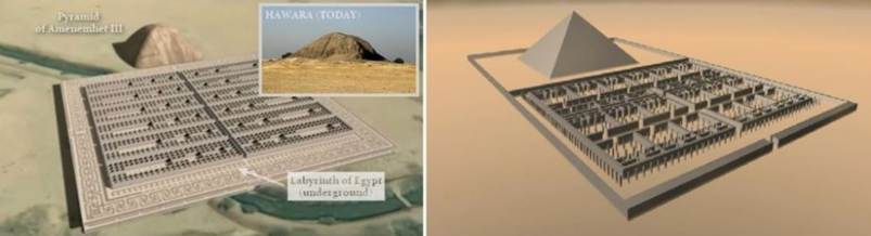 Em 1888, o professor Flinders Petrie localizou o que talvez fosse o local real do Labirinto egípcio em Hawara. Havia fundações originais suficientes para determinar aproximadamente o tamanho e a direção do edifício. O Labirinto media cerca de 304 metros de comprimento e 244 metros de largura. Em outras palavras, era grande o suficiente para abrigar os grandes templos de Karnak e Luxor!